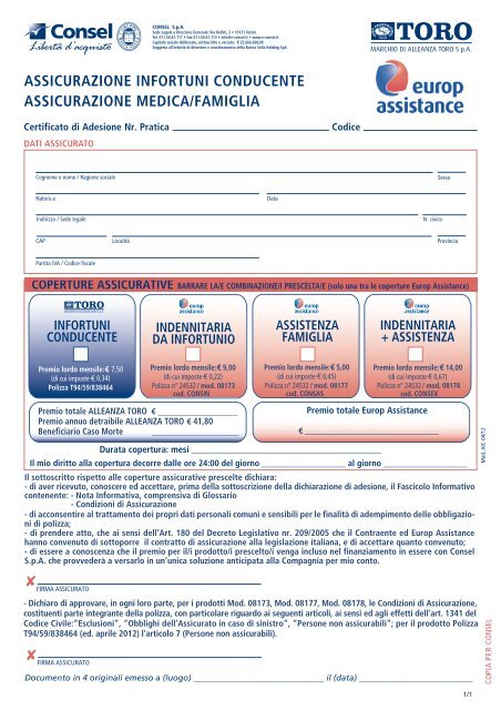 Disdetta polizza infortuni da circolazione con preavviso di 30 giorni ... Il modulo disdetta contratto di assicurazione polizza infortuni da circolazione deve essere utilizzato dal contraente per comunicare alla compagnia ... › fine-contrattoDisdetta assicurazione: come funziona, procedura da fare Dec 21, 2017 · Polizza infortuni conducente legata alla RCA – ATTENZIONE, per questa garanzia accessoria deve essere inviata disdetta scritta entro 60 giorni, altrimenti la copertura rimane, anche cambiando RCA Come inviare la disdetta dell’assicurazione Modulo disdetta assicurazione conducente: fac simile editabile La disdetta polizza infortuni conducente, che risarcisce i danni fisici subiti dal guidatore in caso di incidenti con torto, può essere comunicata prima del ...